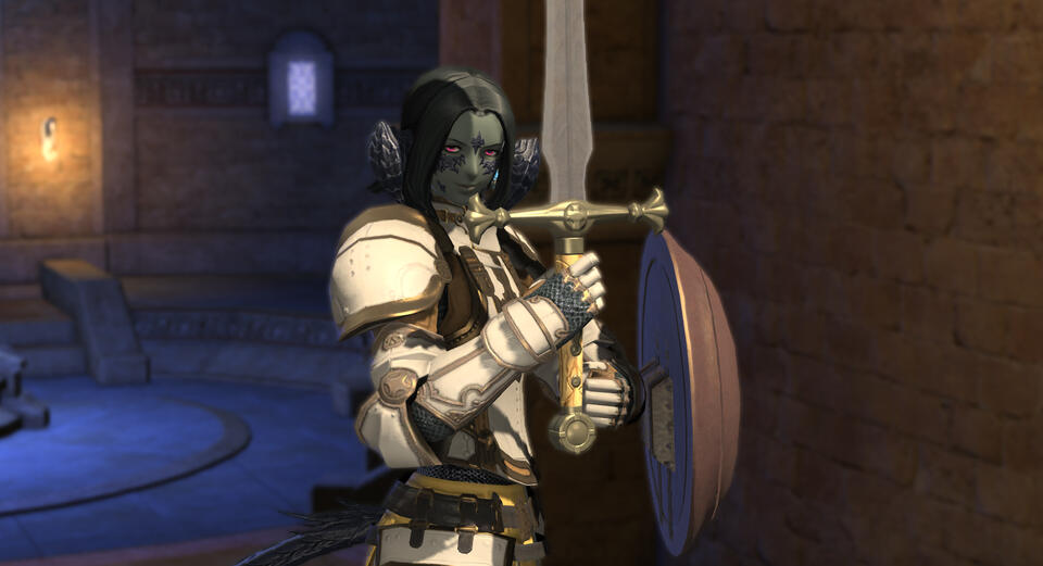 Dotharl tradition holds that all members of the tribe are reincarnations of past warriors, come to learn and grow with every new body they are born with. It was assumed that the new young boy would be a great warrior, his propensity for the blade apparent from a very early age. It was not until puberty, though, that young Cirina was found to be both male and female, as her body flowered with different physical characteristics.Almost immediately, she was shunned as an abomination, an amalgam of two conflicted souls that rendered her body deformed. She was often called Husk, belittling her body and dismissing any prior experiences her twin-soul body could bring to bear for the Dotharl. She was passively ignored at best and the victim of abuse at worst. Still, she would live on, surviving each sun out of spite to those who tried to grind her to heel. This was thanks in no small part to her lightning-fast bladework, a skill that saw her craft the title of "swiftsword of the steppe."After a time, though, even her will was shattered by years of trial by fire. She gathered what few possessions she could, scraped together just enough gil to charter a boat, and made her way to Eorzea, arriving to Ul'dah with only the clothes on her back and a beaten blade at her hip.Fate would intervene on this flotsam of a woman when Cirina met Caalun, another member of the Dotharl tribe who left the steppe for some of the same reasons Cirina did. The two almost immediately made a connection and have become inseparable, styling themselves as warriors against the entire realm. Together, they seek to live free, out, and proud, with Cirina hoping to become a gladiator of the Bloodsands, marry her love, and shed the shell of her past tortures to become the woman she is meant to be.